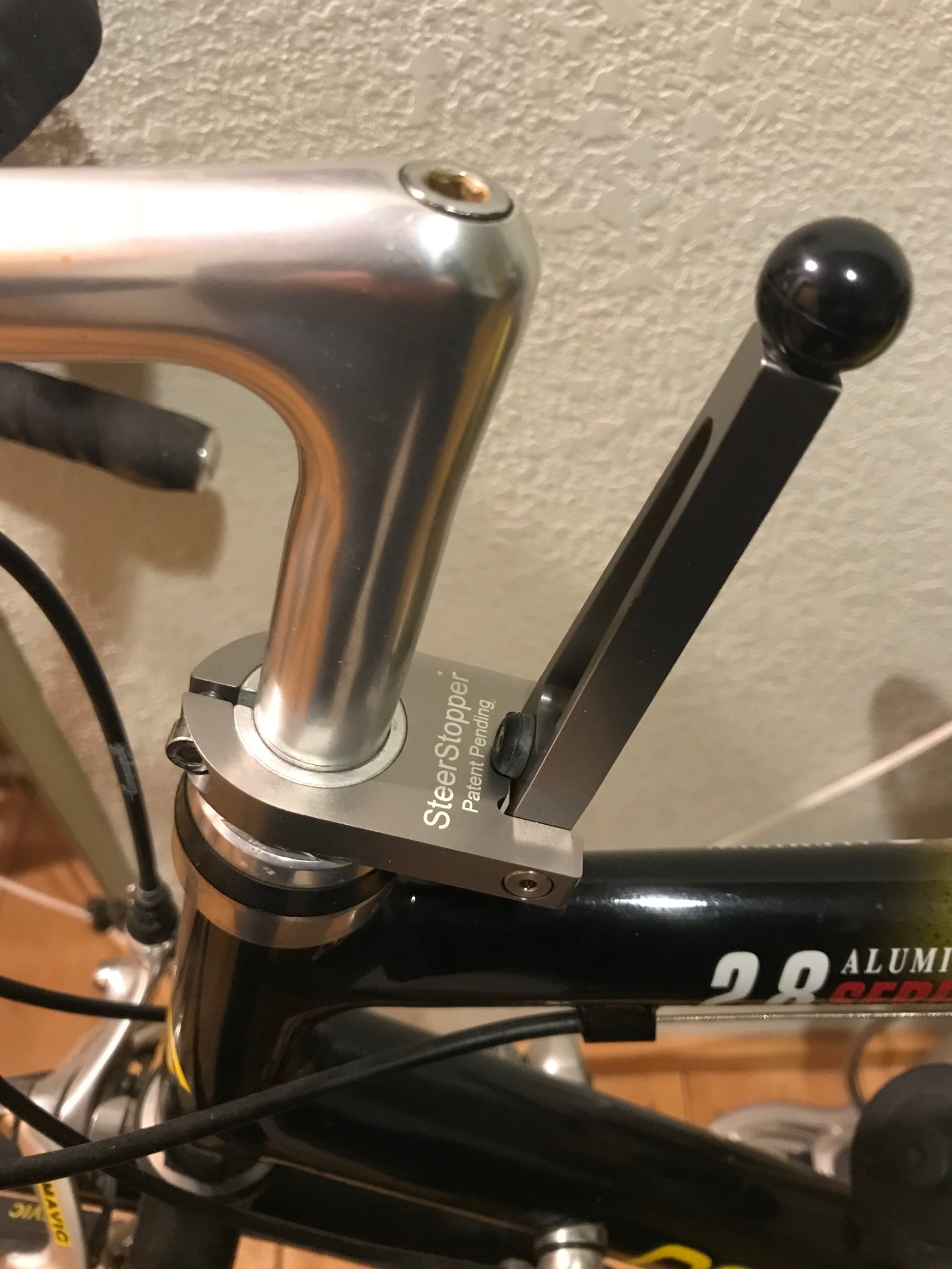 SteerStopper® on a Salsa touring bike. Photo courtesy of Michael M.