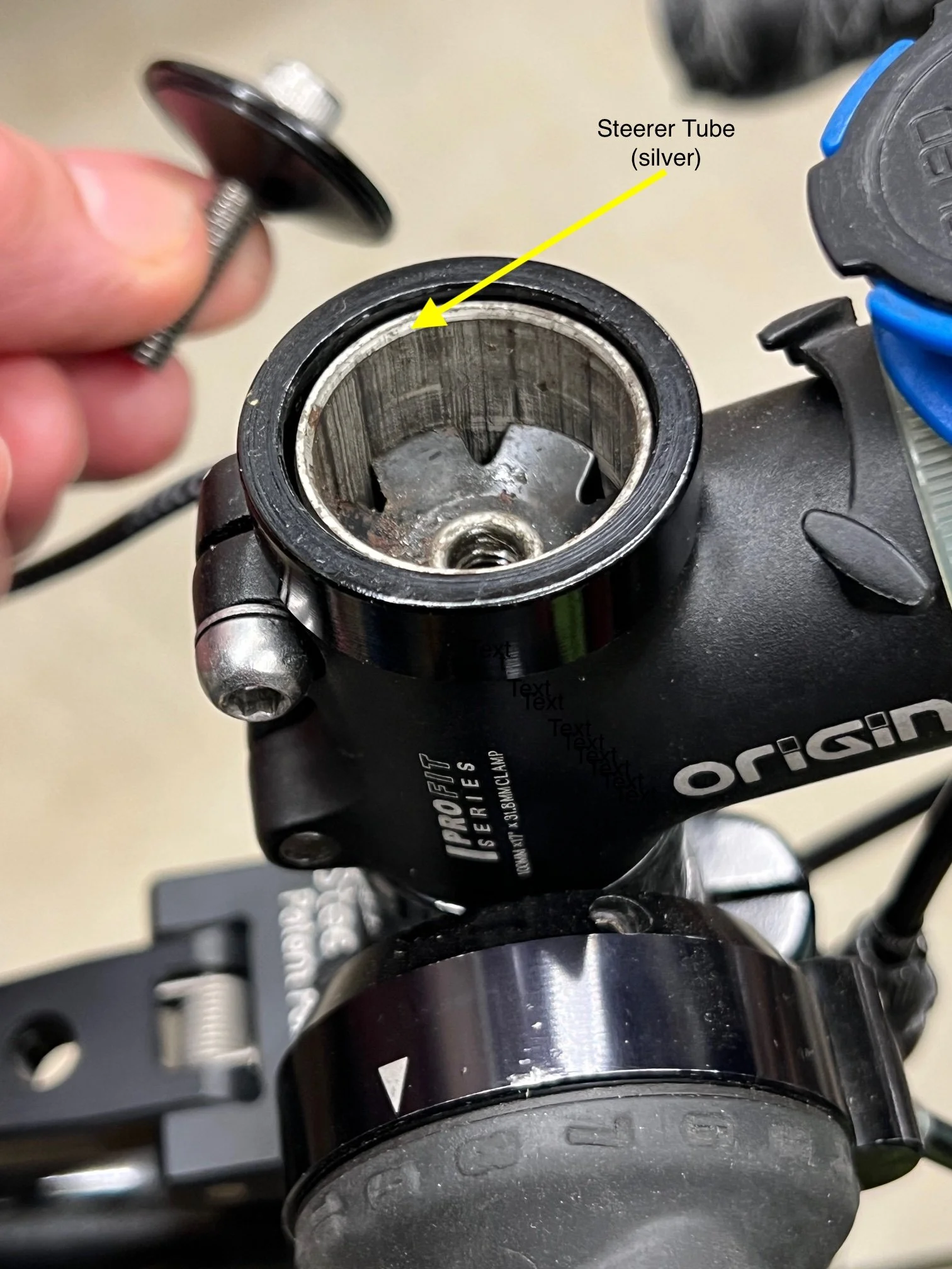 Close-up image of a Steerer Tube including the Star Nut, Stem and 10mm spacer